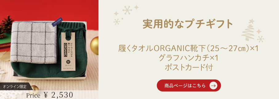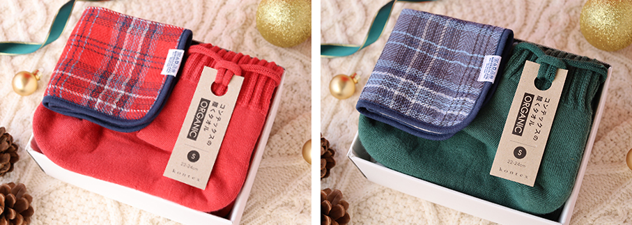 ・クリスマス気分なギフトセット 履くタオルORGANIC×タータンチェックハンカチ