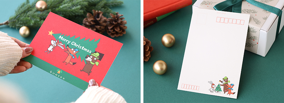 クリスマスを盛り上げる楽しいポストカードです。