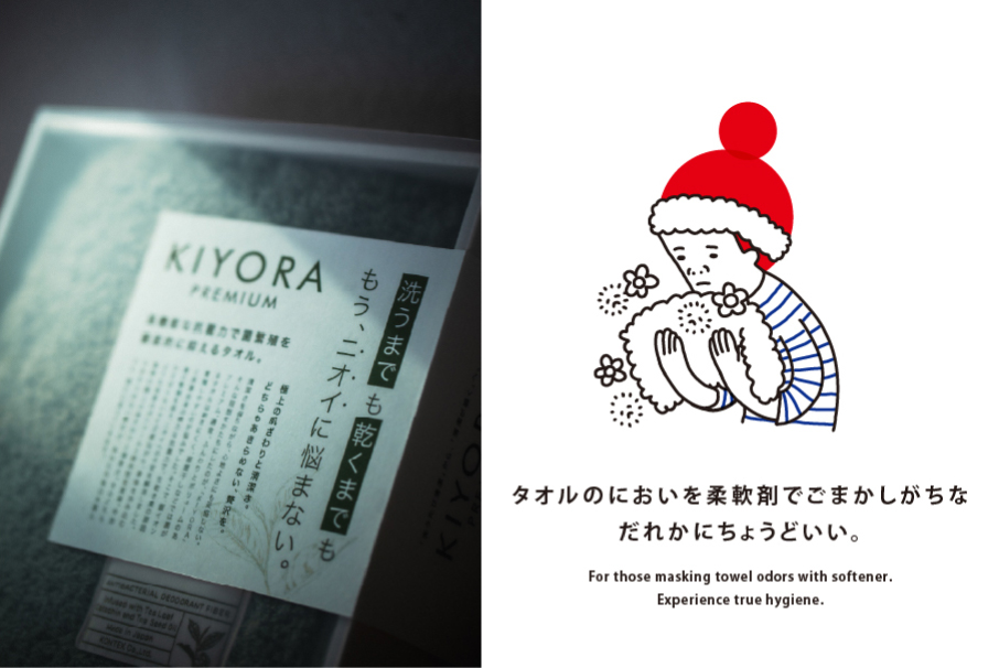 たとえば、今春発売のKIYORA(抗菌防臭タオル)を作ったきっかけは、サウナ好きの社員の日常のある悩みからでした 。夜遅くに帰宅し、洗いたい瞬間に洗濯機が回せないライフスタイルのなかで、タオルのニオイを柔軟剤でごまかしていることに気づきました 。 「化学的な香りに頼らず、菌を減らし続けることでニオイを防ぎたい」 。そんな思いから、部屋干し臭に強いKIYORAが誕生しました 。