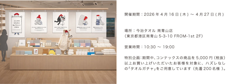 今春、東京・南青山の今治タオルオフィシャルショップにて、私たちのポップアップイベントを開催することになりました 。